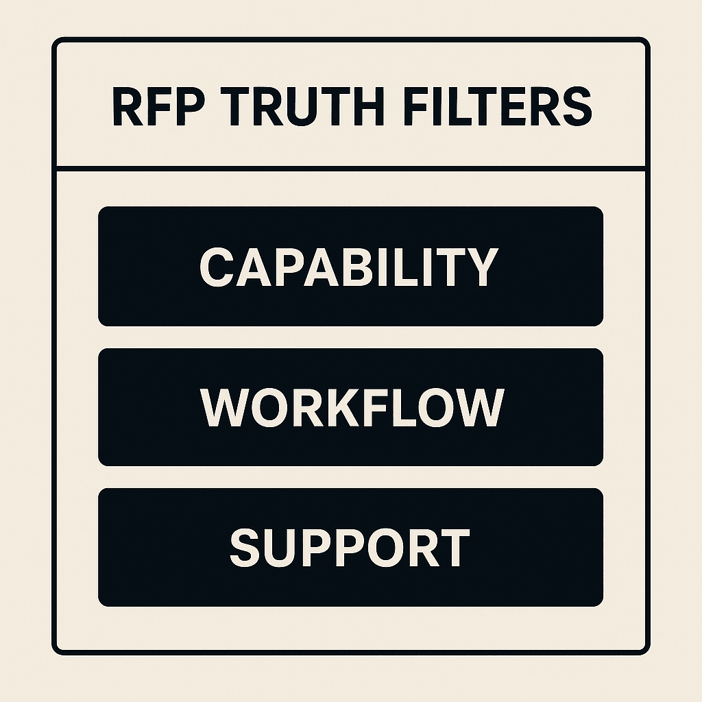 Skip 147-item checklists. Ask questions that force vendors to show their hand: